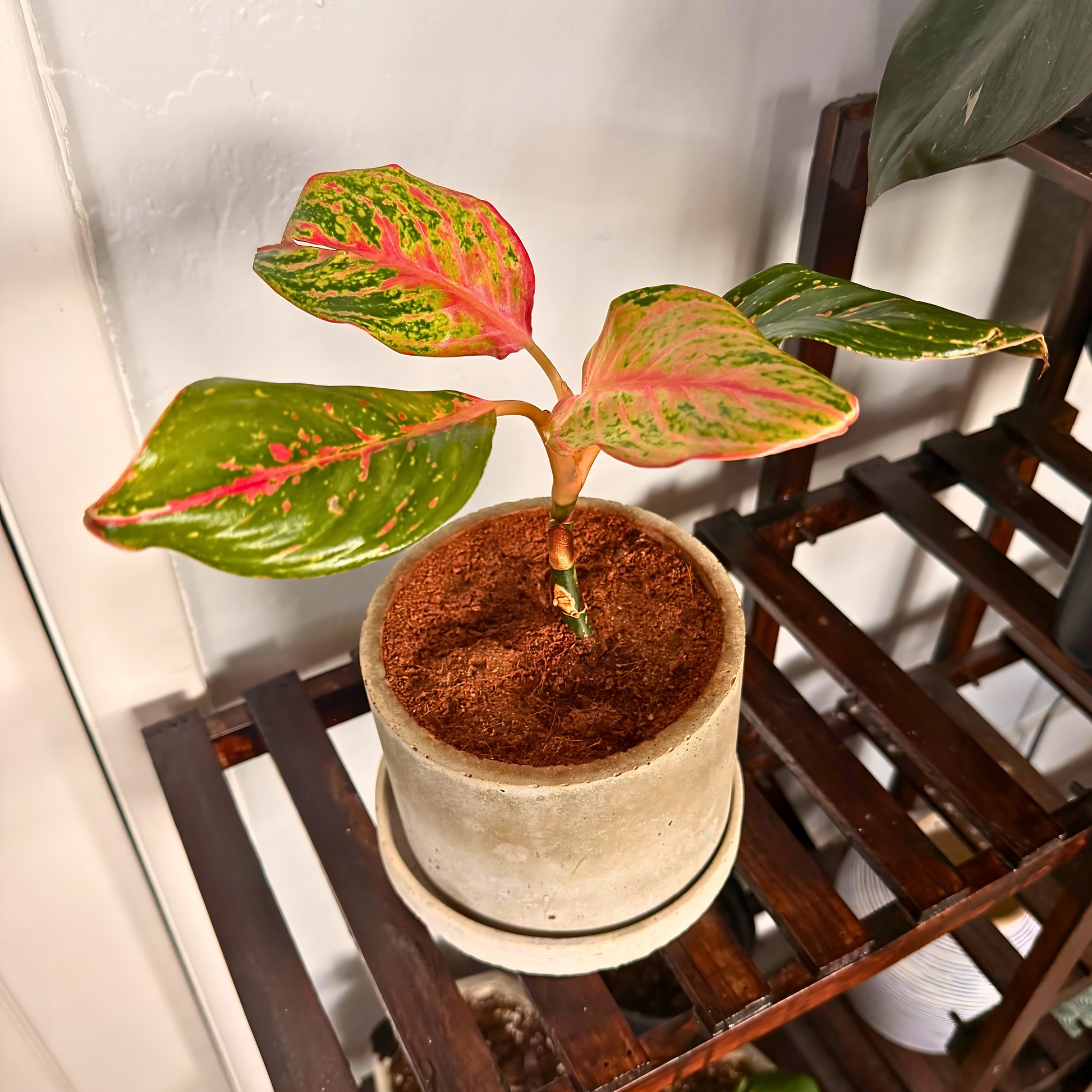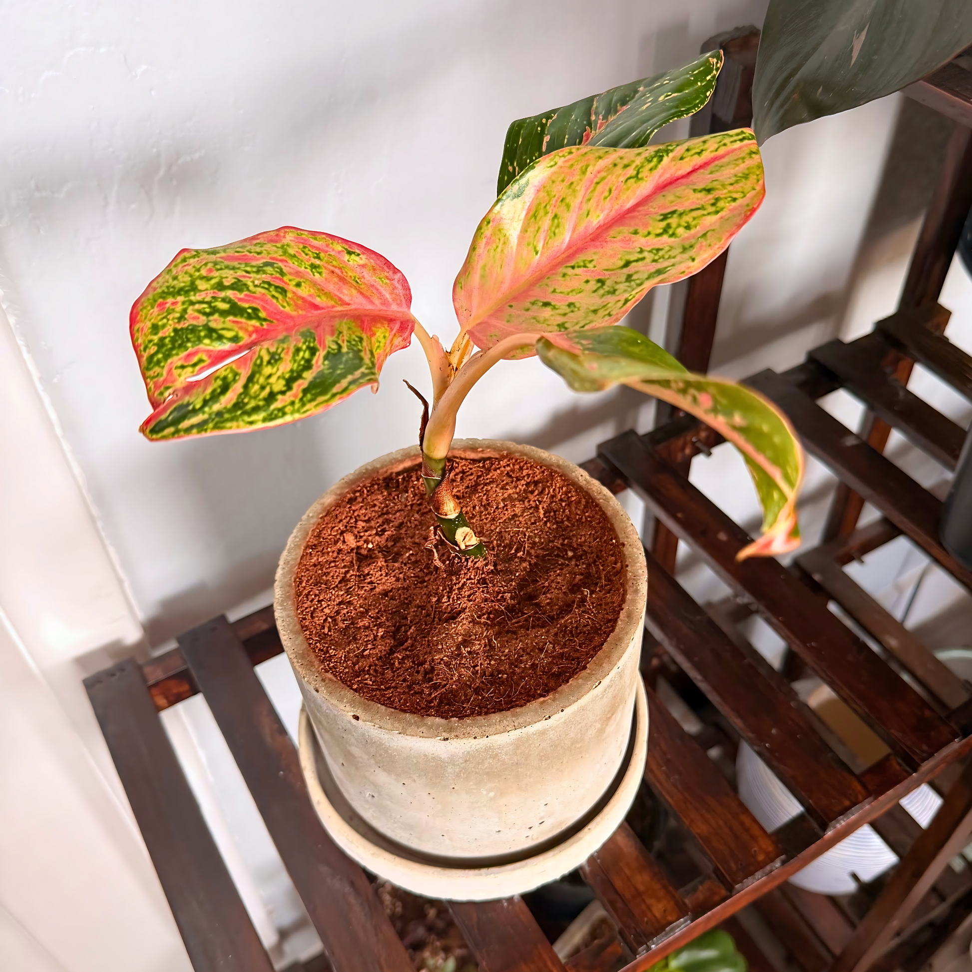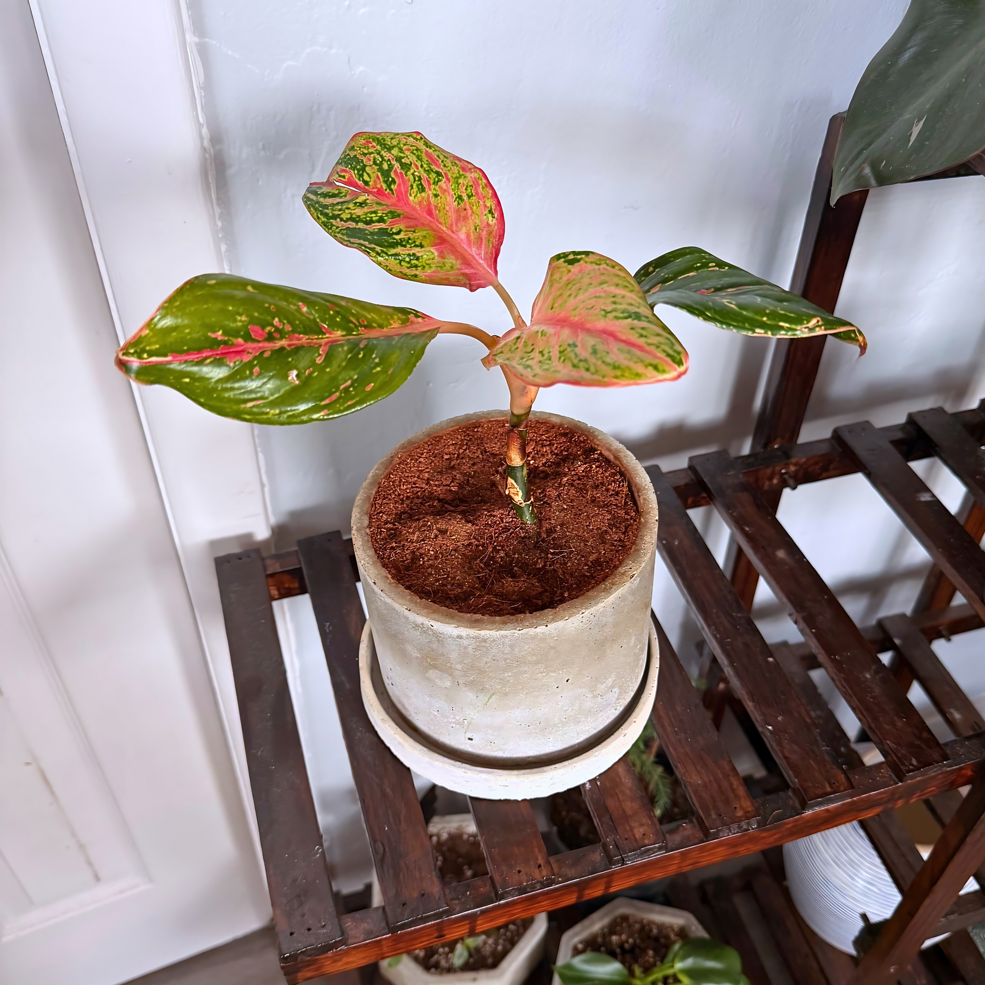 Your Aglaonema comes in our signature Charlie Pot Original – a hand-crafted concrete planter with a minimalist circular design. Each pot includes a matching drainage tray for healthy watering and a modern, elevated look that blends with any décor.